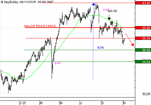 Le franchissement de la résistance à 39,9 euros invaliderait ce développement baissier à court terme.