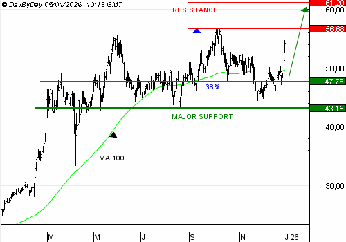 Leonardo a stagné au cours des dernières semaines de 2025, avec le secteur de la défense européen. Les ingérences américaines au Vénézuela remettent à l'ordre du jour les besoins d'armement en Europe et permettent un bond du titre. La première résistance à 56,68 euros approche, et nous proposons une prise de profit partielle.