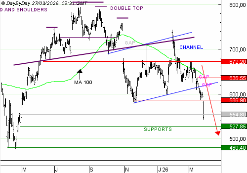 META PLATFORMS a accéléré à la baisse hier soir à la suite de la décision de justice en sa défaveur. Nos objectifs sont dépassés, et nous proposons de prendre des profits partiels. La baisse est violente, et pourrait mener plus bas, les indicateurs ne reflétant pas une survente particulièrement importante.