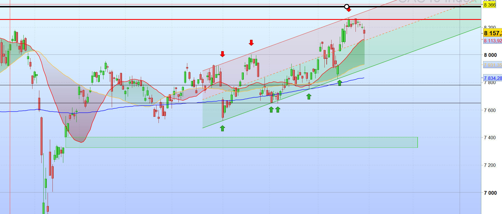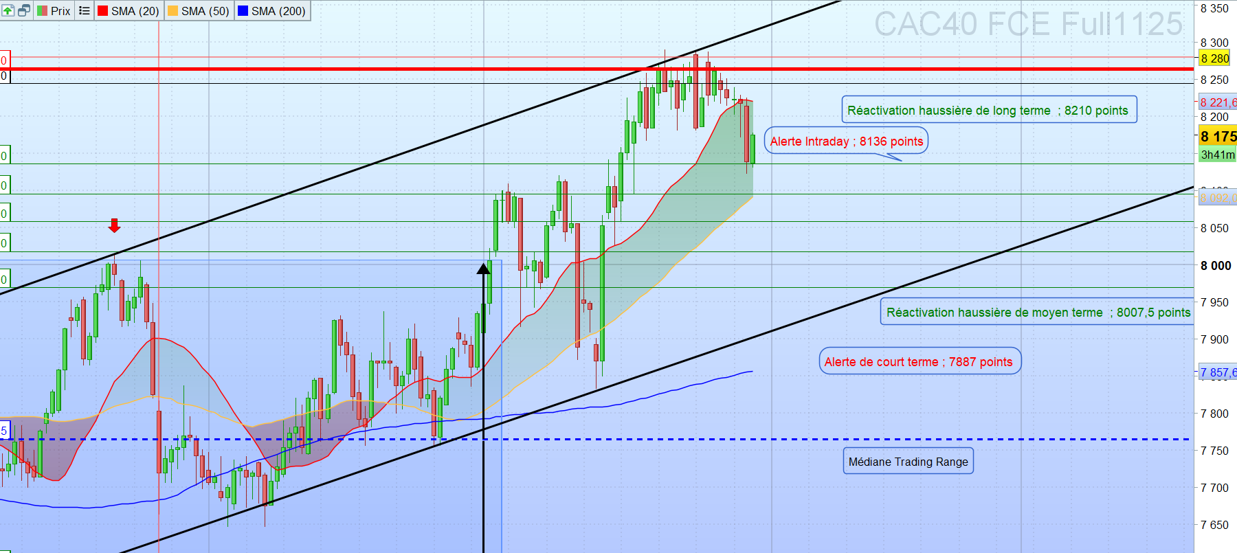 En intraday, la tendance est baissière en dessous de 8172 points.