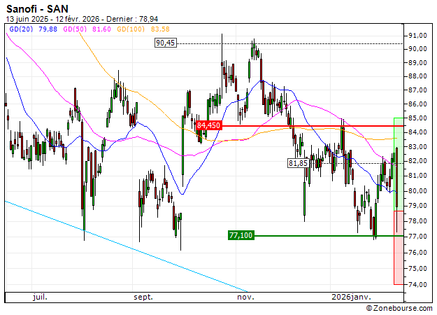 Sanofi : A proximité d'un support moyen terme important (BC20V)