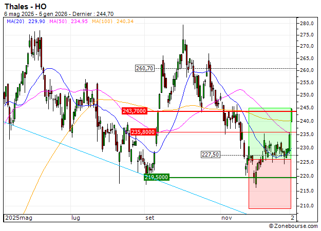 Thales : Prises de bénéfices sur le warrant CALL Vontobel OI81V (+36.91%) (OI81V)